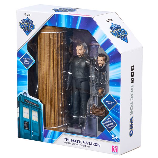 This higher-specification “Vortex Edition” release comes with a scaled 5.5-inch figure of the iconic ‘Anthony Ainley’ Master, presented in his original black velvet outfit. This figure release comes with two interchangeable head pieces, one with a more neutral pose and a second featuring the Ainley Master’s notorious sneer!