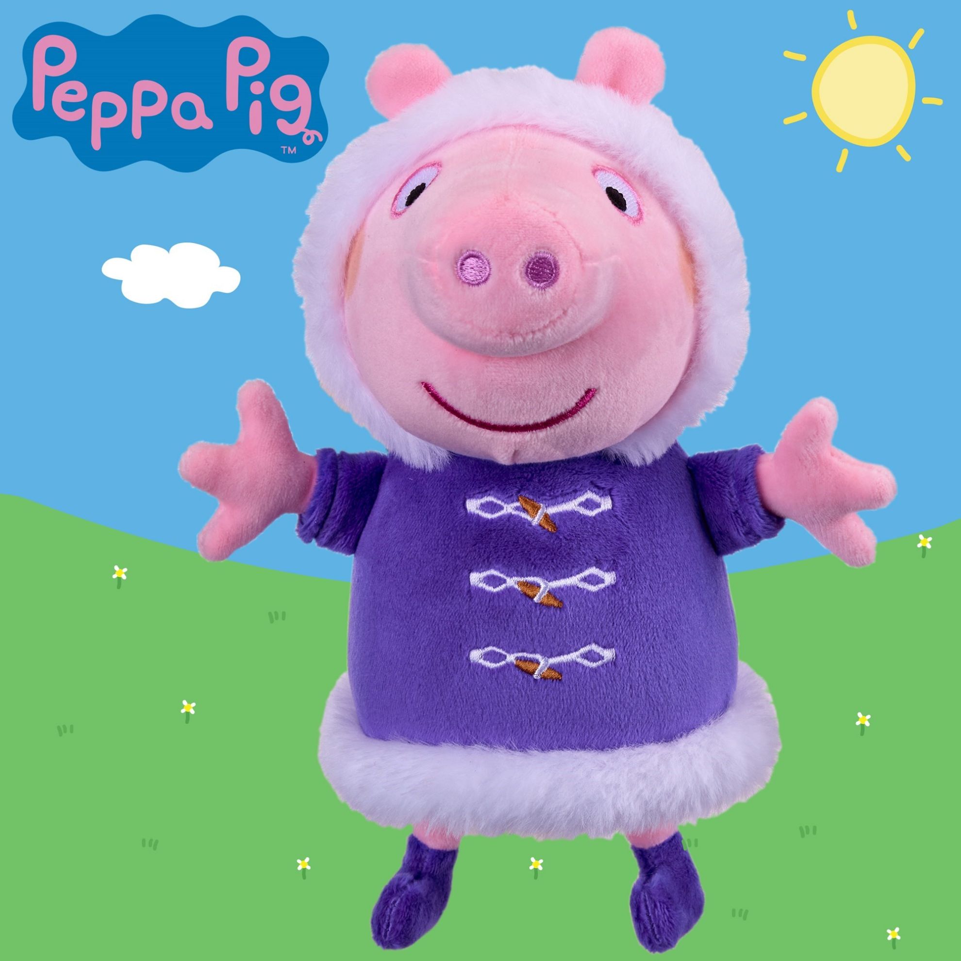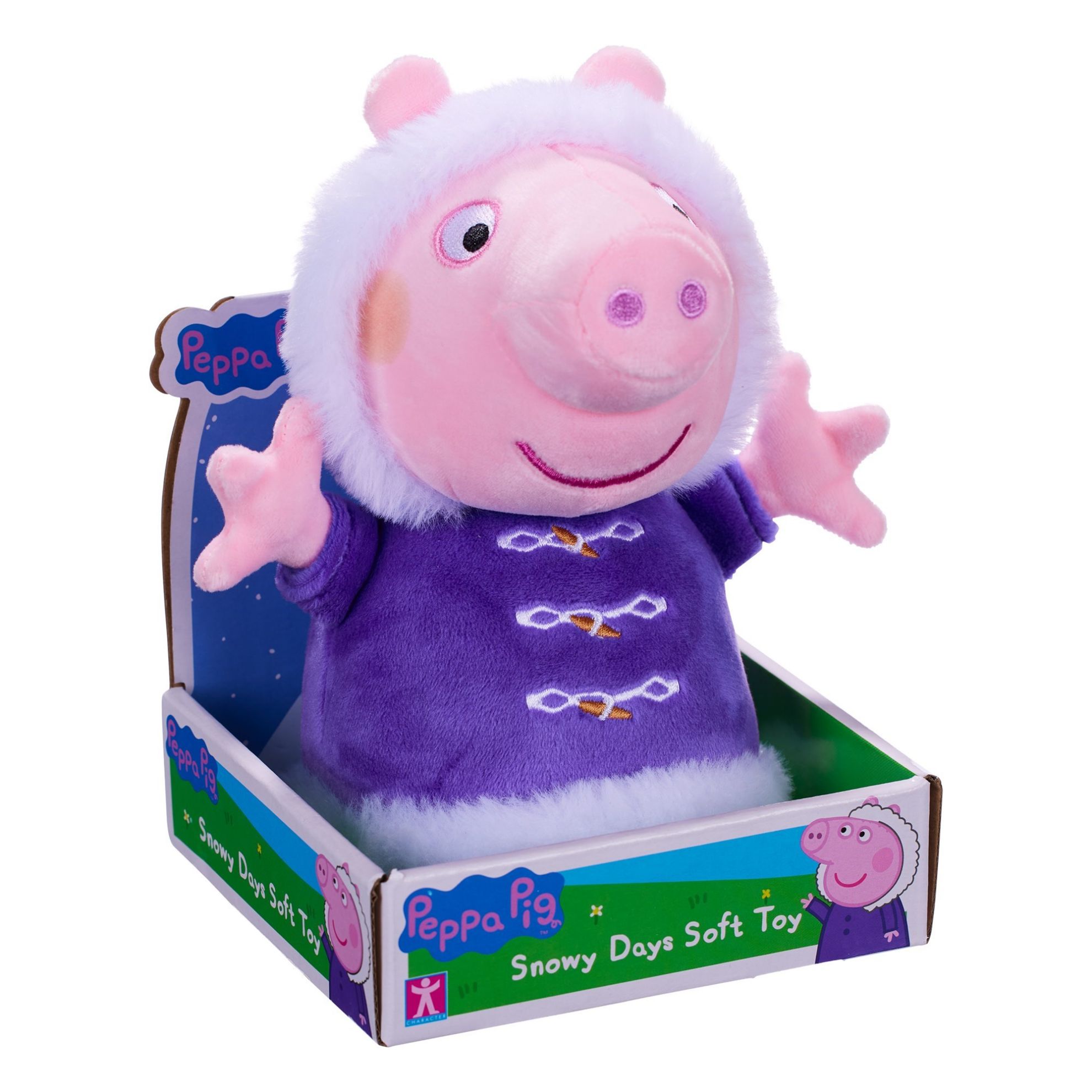 Snowy Days Peppa is wearing her furry purple winter coat, and loves getting out into the snow on a cold Winters day. This supersoft collectable plush is 6" tall and is perfect to cuddle or for imaginative play.